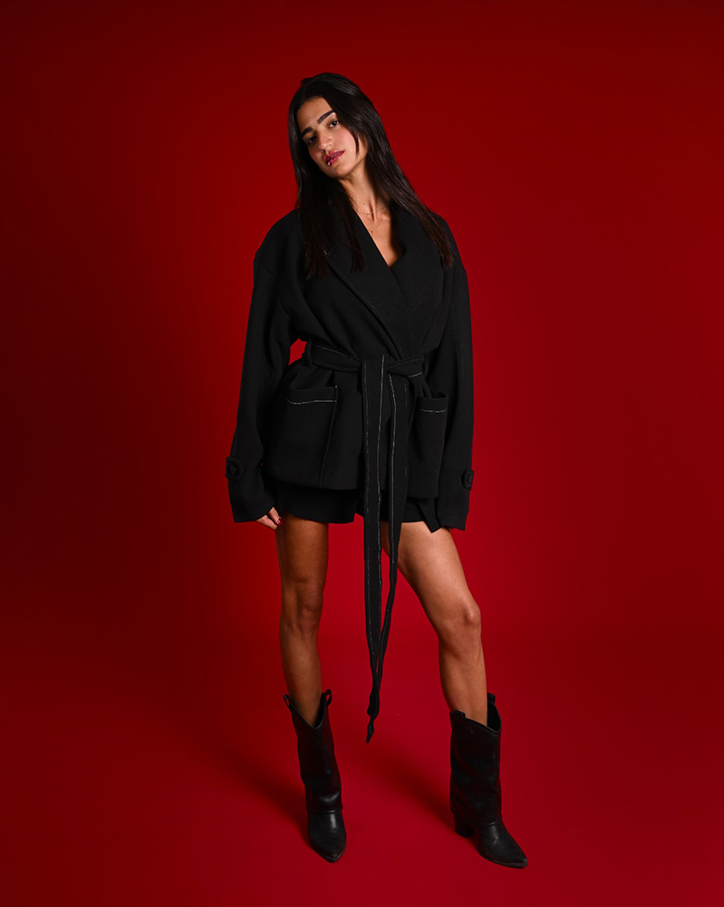 Each detail is intentional, from the contrasting seams to the refined silhouette.